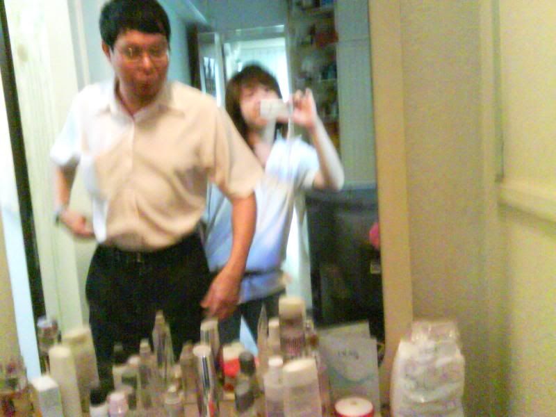 Me and dad fighting for mirror. I won