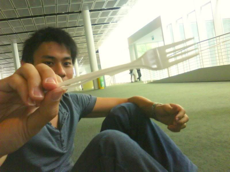 James' all in one fork! A fork that has a part detached and can become a knife as well.